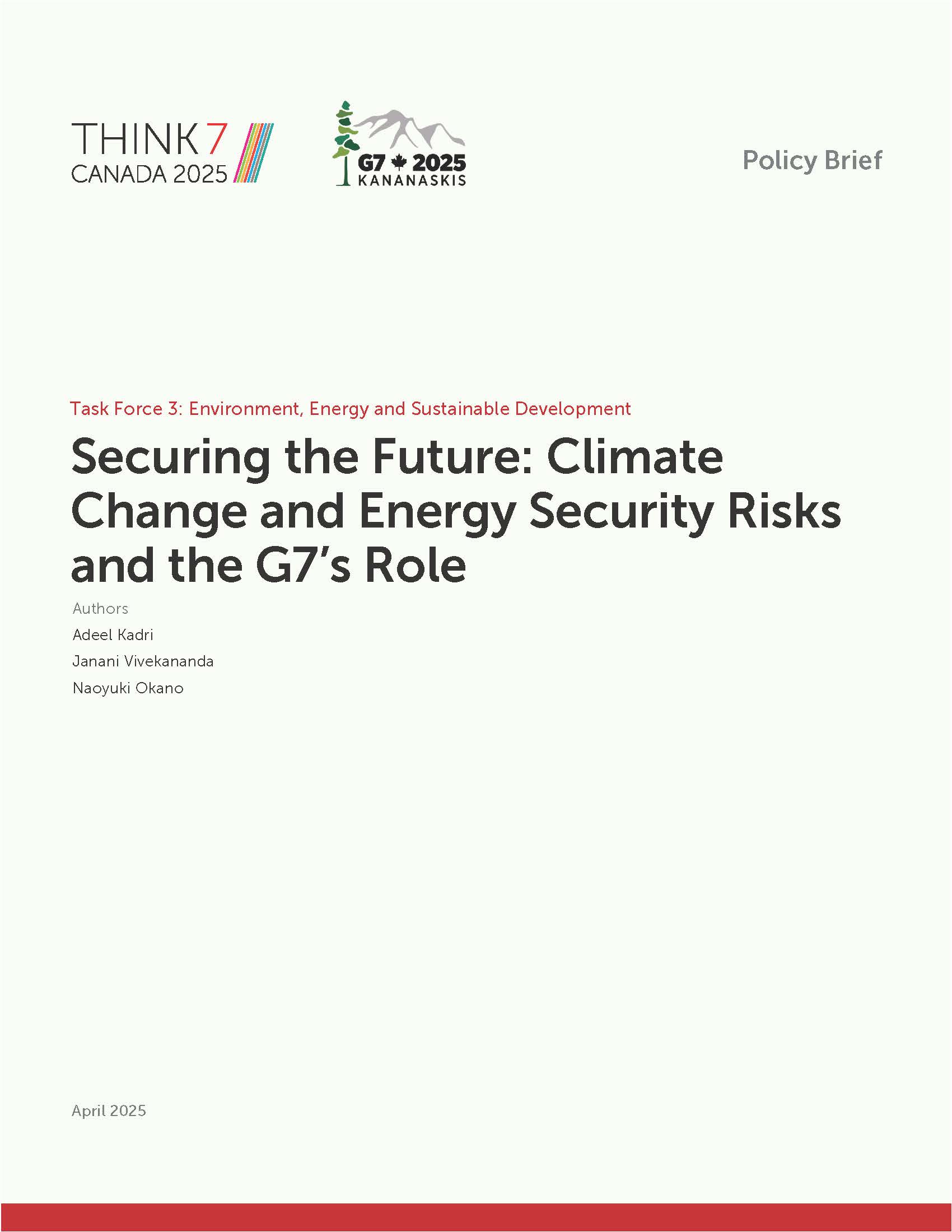 - Each year, T7 sets several themes for recommendations that reflect the intentions of the chair country. This year, the themes included “Transformative Technologies (AI and quantum technology),” “Digitalization of the Global Economy,” “Environmental, Energy, and Sustainable Development,” and “Global Peace and Security.” Our proposal, “Ensuring Future Security: Climate Change and Energy Security Risks and the Role of the G7,” falls under the theme of Environmental, Energy, and Sustainable Development. The main messages are as follows: