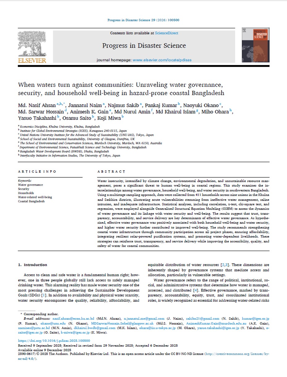 Under the theme of climate induced human mobility within our ongoing project on the Asia Pacific Climate Security APCS initiative, we initiated our project activities with a field visit to Bangladesh between 30 October to 2 November, 2023. To comprehensively understand the intricate issue of climate induced human mobility, we conducted a preliminary visit to our study area in Koyra, Khulna district, Bangladesh. The main objective of this visit is to develop a robust hypothesis and research methodology based on the ground reality. We achieved this through a comprehensive household questionnaire survey and key informant interview using open ended questions. For the latter, we partnered with Unnayan, the largest NGO actively engaged in addressing climate security, human well-being and sustainable in this area.